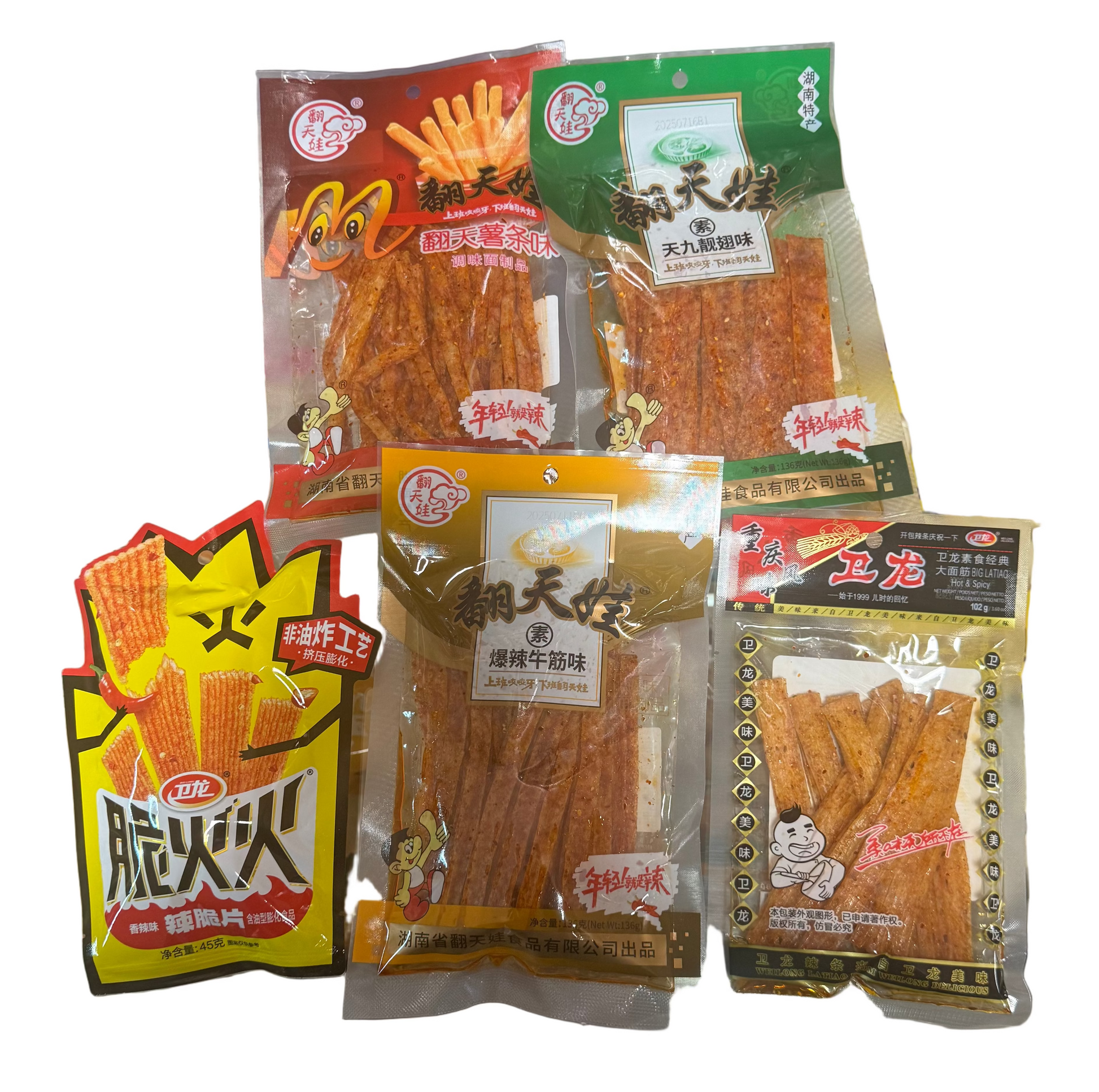 peperoncini, pepe di SICHUAN, cumino, mostarda, emulsionante(E471), palvere di fibre alimentari di soia, estratto di lievito, esaltatori di sapidità(E621, E635),